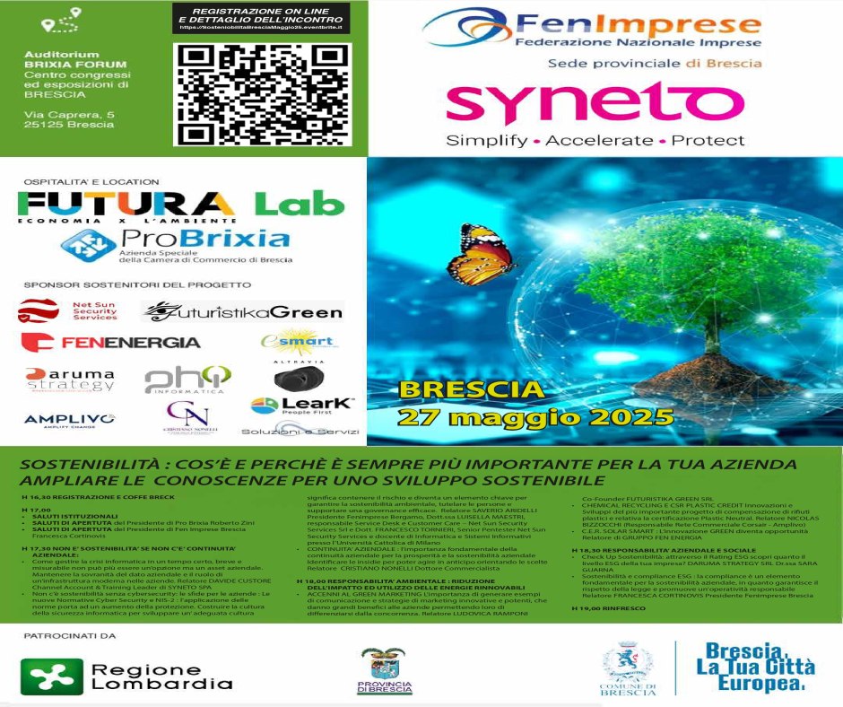 Il 27 maggio 2025, LearK ha avuto l’onore di essere sponsor dell’evento “Sostenibilità: cos'è e perché è sempre più importante per la tua azienda ampliare le conoscenze per uno sviluppo sostenibile”, organizzato da FenImprese Brescia e ospitato presso il Brixia Forum di Brescia.